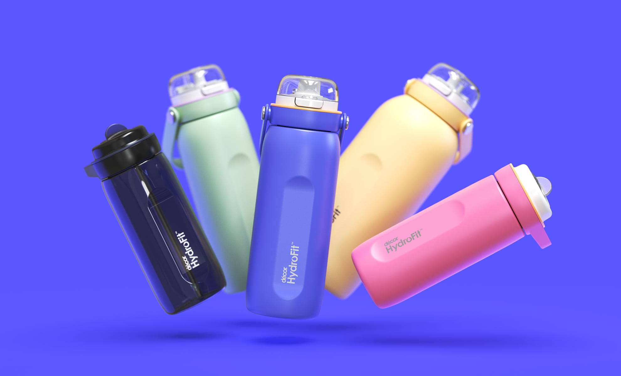 - Décor Hydrofit bottles feature straws, flip lids, and easy-grip designs that make sipping fun: Décor Hydrofit range