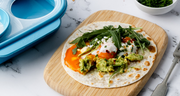 5. Top each wrap with the feta eggs alongside rocket, mashed avocado, chilli flakes and chives.