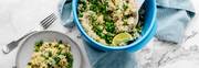 - Stir through spring onion, lime and butter. Sprinkle with thyme and parmesan upon serving.